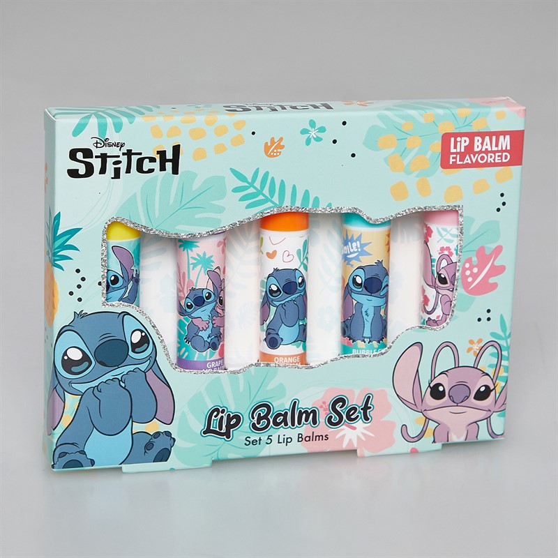 - Lilo and Stitch Kids five piece flavoured lip balm gift set. Flavours include: vanilla, cherry, grape, orange and bubble gum.