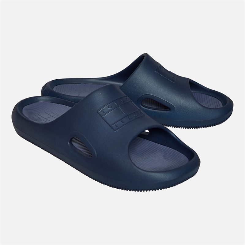 Tommy Jeans Mens Cut Out Embossed Sliders Dark Night Navy
