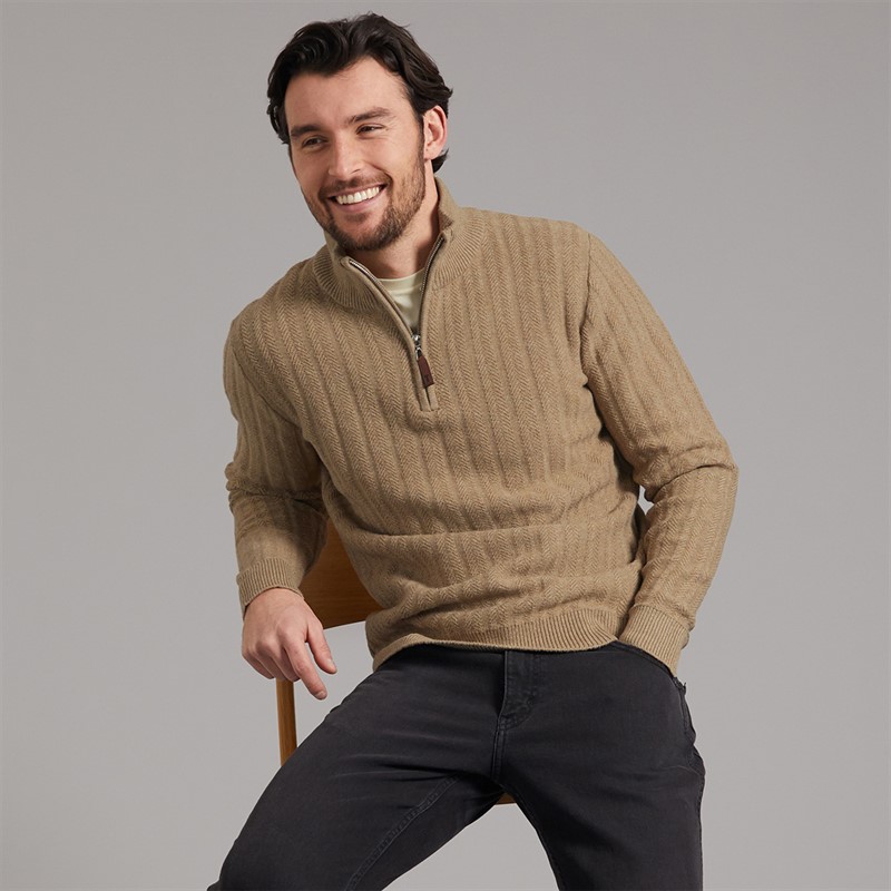 Saltwell Mens Charnley 1/4 Zip Jumper Oatmeal Marl