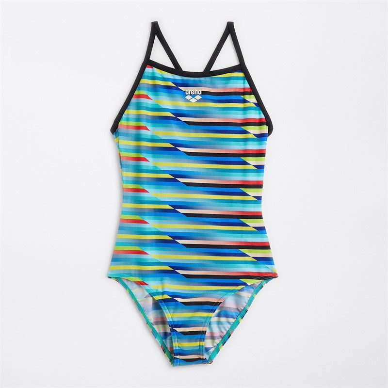 Arena Junior Girls Racing Stripe Swimsuit Multi/Black