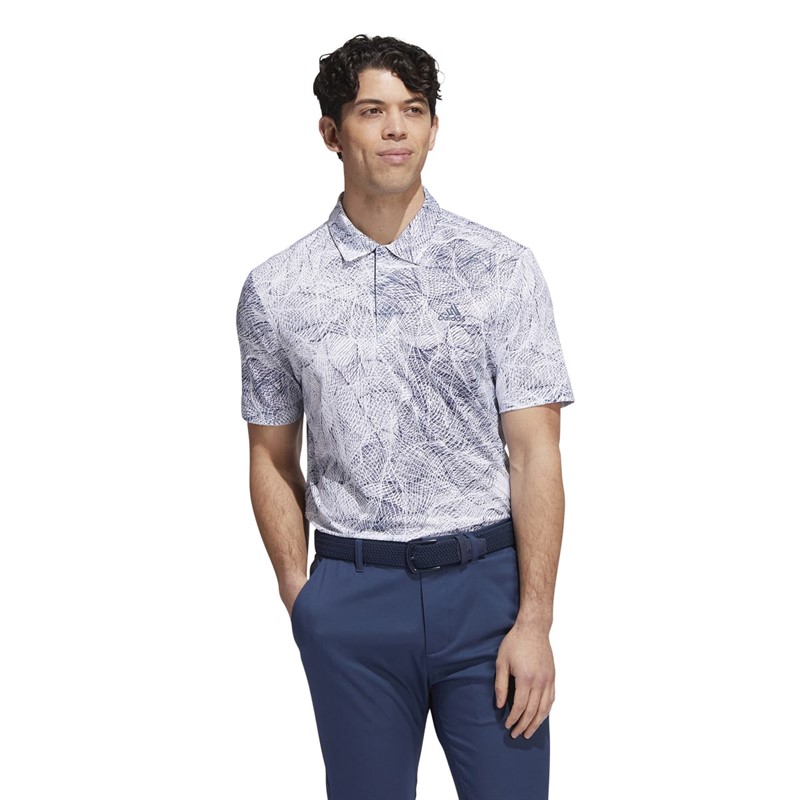 adidas Mens Motion-Print Golf Polo White/Crew Navy