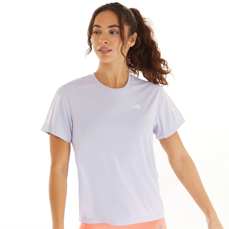 - adidas short sleeve t-shirt. This adidas running t-shirt is destined to be a go-to for your short runs and distance days alike. The breathable fabric is made with AEROREADY to absorb moisture and keep you dry. The sporty silhouette features simple 3-Stripes style and reflective details that shine when the light fades. Made with 100% recycled materials, this product represents just one of our solutions to help end plastic waste. IC5192