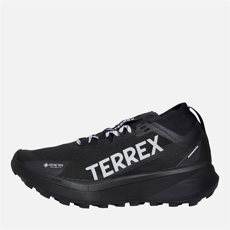 - adidas low profile lace up trail running shoes. Responsive and supportive, these Terrex Agravic trail running shoes are built for logging miles and adventurous days on the trail in wet, muddy conditions. A waterproof, breathable GORE-TEX membrane seals out wet conditions to keep your feet dry, and you focused on the trail ahead. Abrasion-resistant overlays add trail-proven durability, and the gusseted tongue seals out debris. A Lightstrike 2.0 midsole provides responsive cushioning for stability and comfort on rough terrain, and the rocker shape promotes a smooth roll-off for a fluid pace. The Continental™ Rubber outsole with 4 mm lugged tread maintains secure footing across roots and rocks, wet or dry. This product features at least 20% recycled materials. By reusing materials that have already been created, we help to reduce waste and our reliance on finite resources and reduce the footprint of the products we make. IH5358