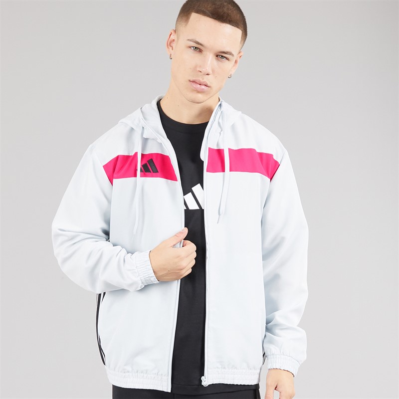 adidas Mens Tiro 25 Essentials Woven Full Zip Hoodie Clear Grey/Real Magenta