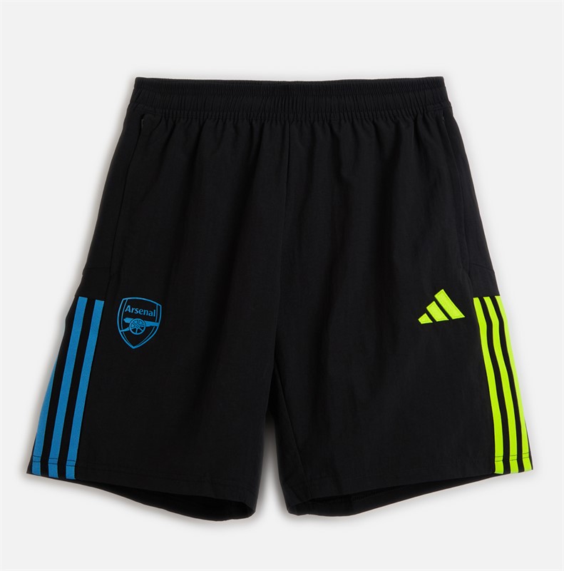- adidas AFC Arsenal downtime shorts. Whether you're on the sidelines or taking it easy, these adidas Tiro 23 football shorts stand up to whatever you've got planned. The Arsenal crest embroidered on one side shows your club pride. A drawcord waistband ensures you can always find your perfect fit. With handy zip pockets, there's no chance of your valuables taking a dive. Made with 100% recycled materials, this product represents just one of our solutions to help end plastic waste. HZ2164