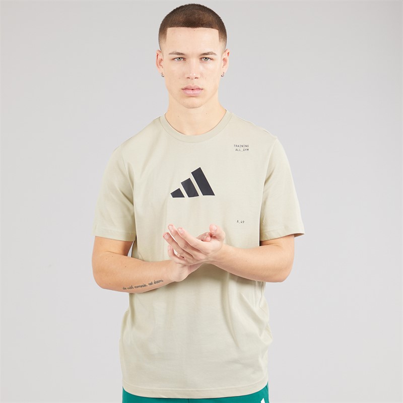 adidas Mens All Gym Category Back Graphic Training T-Shirt Beige