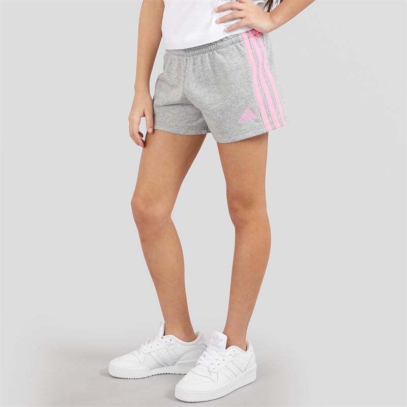adidas Junior Girls Essentials 3-Stripes Shorts Medium Grey Heather/Clear Pink