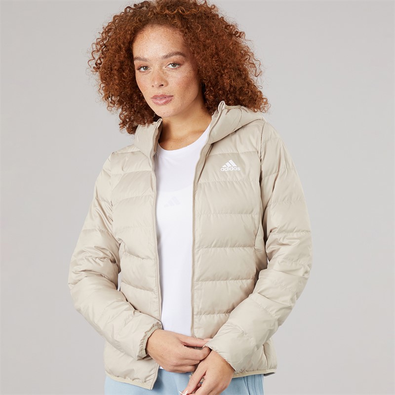adidas Womens Essentials Light Down Insulated Hooded Jacket Wonder Beige