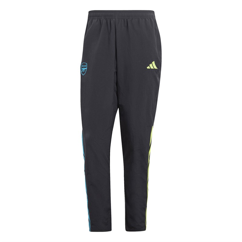 - adidas AFC Arsenal presentation track pants. Fire off your Gunners pride wherever you go. These adidas Tiro 23 football pants were created for players and fans to show their togetherness when they're off the pitch. Lightweight but tough, they're made with plain weave fabric to keep you comfortable and focused. The club crest, 3 Bar Logo and 3-Stripes stand out in colours borrowed from the away jersey.Made with 100% recycled materials, this product represents just one of our solutions to help end plastic waste. HZ2165