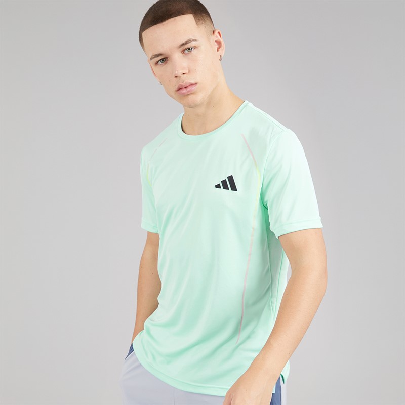 adidas Mens Tech Apparel Colorblock Training T-Shirt Semi Flash Aqua