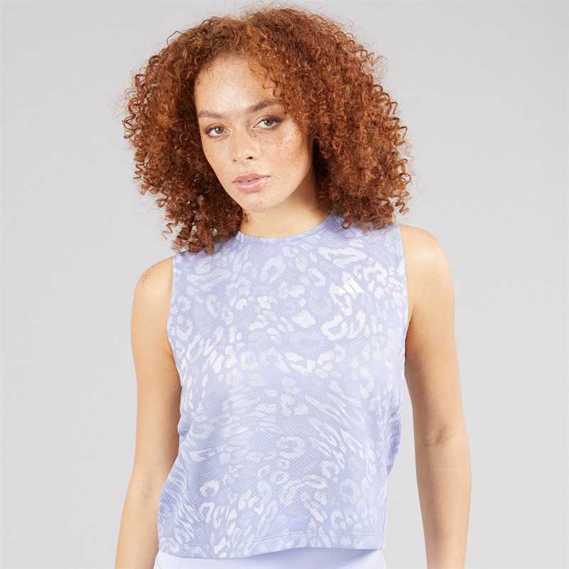 - adidas running tank top. Inspired by an agile wildcat, the print on this adidas running t-shirt might have you feeling like you're running through tropical forests. Wherever you run, it keeps you comfortable with light, breezy fabric that stretches as you move. CLIMACOOL wicks and disperses sweat for cool, dry and distraction-free performance. CLIMACOOL helps you manage sweat with materials that wick and manage sweat quickly. Its fast-dry fibres give you a fresh-skin feel. This product is made with at least 70% recycled materials. By reusing materials that have already been created, we help to reduce waste and our reliance on finite resources and reduce the footprint of the products we make. JD7763