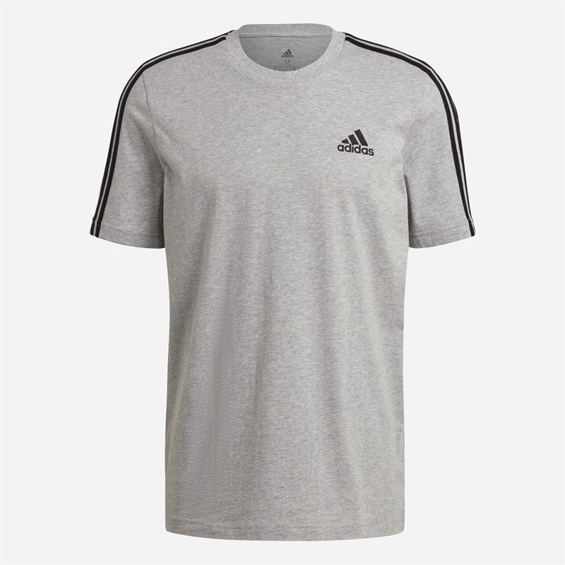 adidas Mens Essentials 3-Stripes T-Shirt Medium Grey Heather