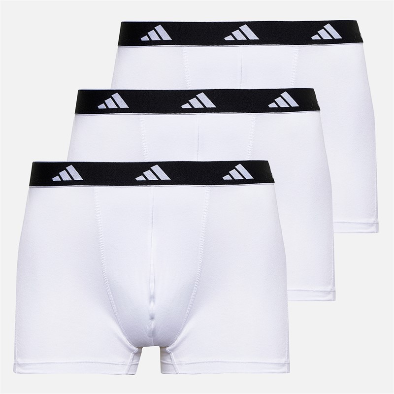- adidas three pack boxers. Built for comfort and functionality, the adidas Active Flex Cotton Trunk 3 Pack Underwear are a versatile addition to your wardrobe. The Real Cool Cotton™ fabric used offers quick-dry plus moisture-wicking benefits, helping you feel fresh. The true to size cut and elastic waist provides a secure fit, while the flexible 4-way stretch adapts to your movements. The contoured comfort pouch delivers reliable support while maintaining a natural feel. JL2950