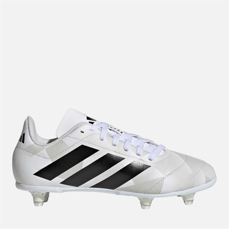 - adidas Kids low profile lace up soft ground rugby boots. Built for rugby's next generation of athletes. Offering a new look inspired by their Kakari and RS15 siblings, these juniors' adidas boots are designed for every aspect of play. Sitting on an outsole that delivers solid traction on soft ground, the durable synthetic upper includes asymmetrical lacing to leave a clean strike zone when kicking. JQ2371