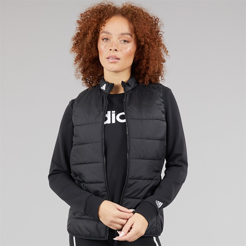 - adidas zip through gilet. Be prepared for chilly, early morning tee times and changing weather on the back nine. This adidas golf vest has high-loft padding for warmth. The full-zip design with a stand-up collar keeps your core warm without restricting your swing. Slip your hands in the front pockets to keep them toasty between shots. HD1186