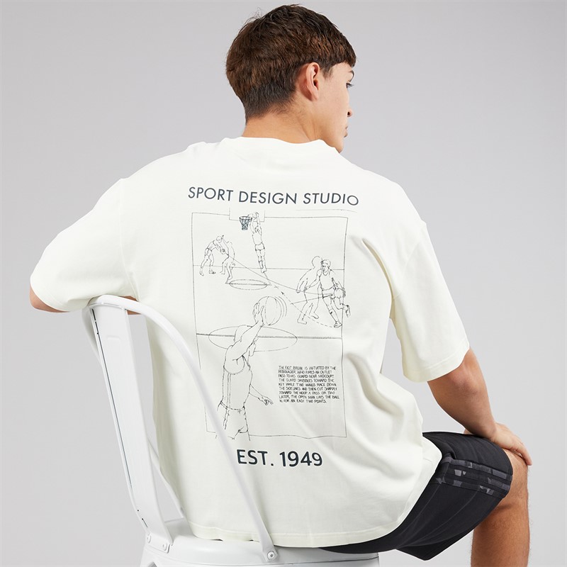 adidas Originals Mens Sports Design GFX Back Graphic T-Shirt Ivory