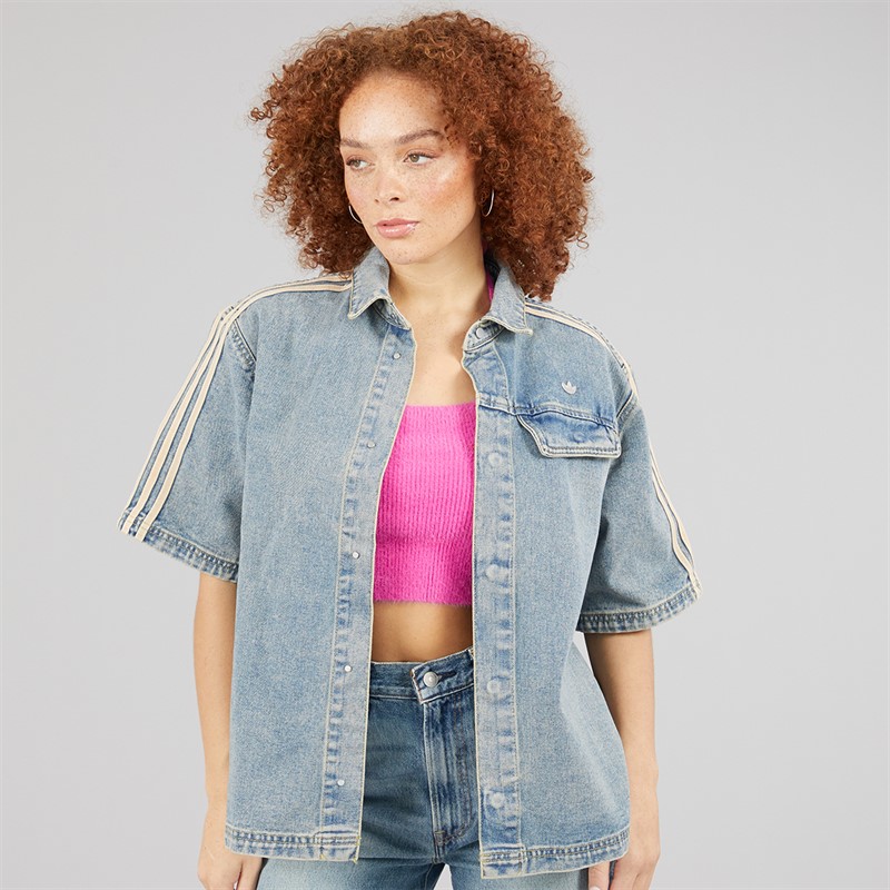 - adidas Originals loose fit denim shirt. This short-sleeve denim shirt from adidas is crafted from 100% cotton to keep you comfortable all day. The design draws inspiration from workwear styles, embracing a refined yet minimalist aesthetic. Pair it with your favourite jeans or dress it up with a skirt for a versatile look that takes you from day to night. JY2871