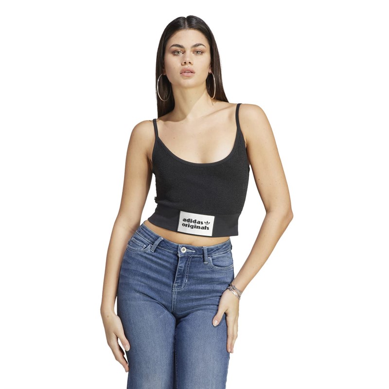 - adidas Originals slim fit tank top. This adidas top has knockout style that performs beyond the ring. Soft terry towel fabric brings a sporty element. We took inspiration from the classic boxing shorts look and added a satin logo badge for a luxe feel. Paired with joggers, jeans or even a skirt, it's clear who the winner is here. A minimum of 70% of this product is a blend of recycled and renewable materials. IC8524