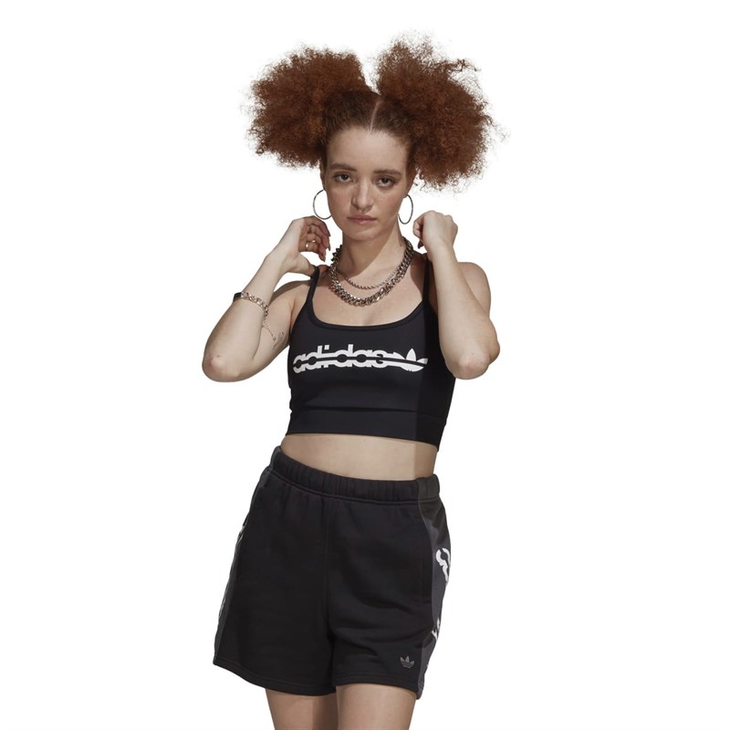 - adidas Originals crop top. A strong foundation for any outfit. This adidas bra top starts you out with a dose of attitude thanks to the bold logo on the front, then gives you endless options to play with style. Throw on a sheer top, add some parachute pants or let it peek out from a bomber jacket. The form-flattering, stretchy fabric feels good however you wear it. Made with a series of recycled materials, and at least 60% recycled content, this product represents just one of our solutions to help end plastic waste. HF2122