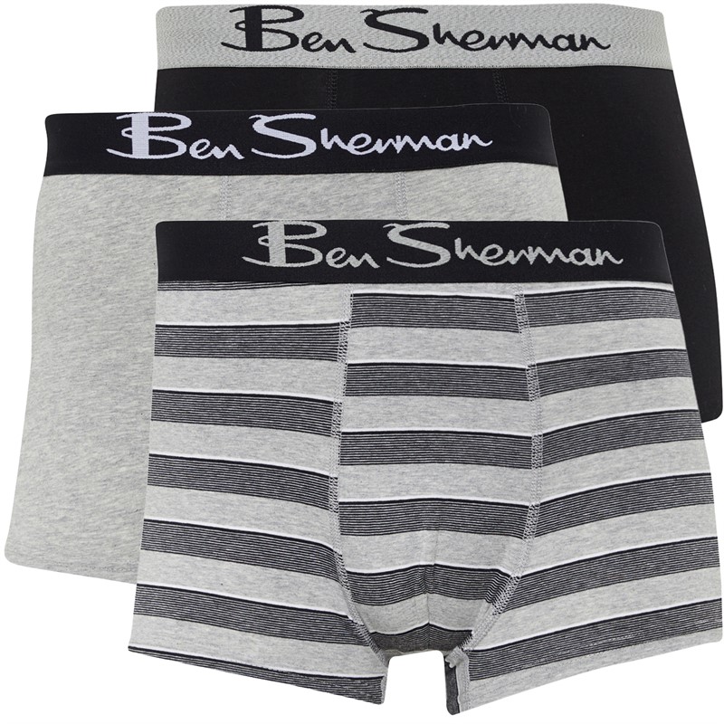 Ben Sherman Mens Avery Three Pack Trunks Black/Grey Stripe/Grey Marl