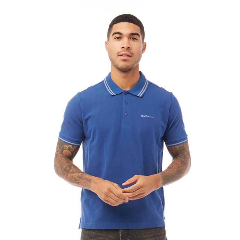Ben Sherman Mens Twin Tipped Pique Polo Ink