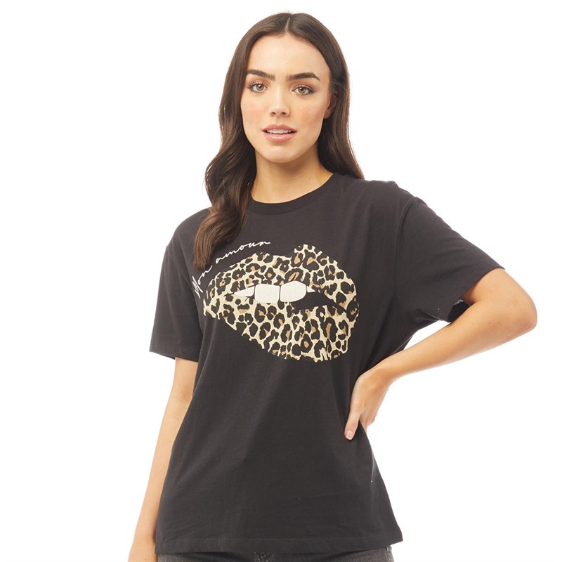 Brave Soul Womens Amor Oversized T-Shirt Black