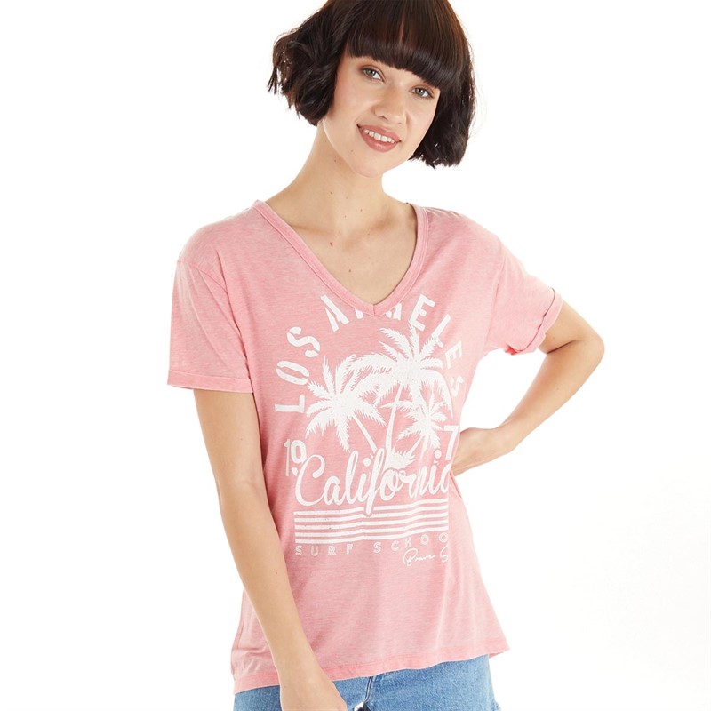 Brave Soul Womens Caline V-Neck T-Shirt Peach