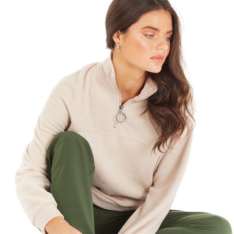 - Brave Soul 1/4 zip neck soft fleece sweatshirt. Our model is 5'8'' and wears a size S.