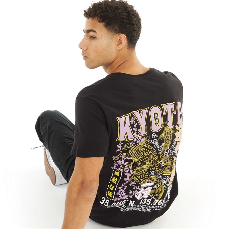 Brave Soul Mens Hasedara T-Shirt Jet Black/Multi-Colour Print