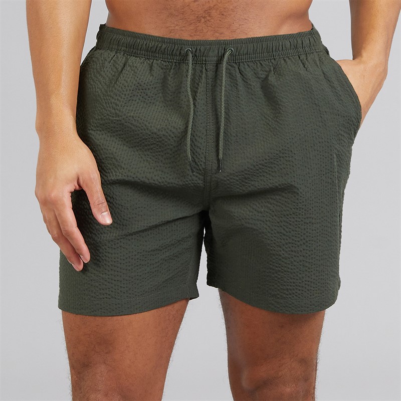 Brave Soul Mens Salou Seersucker Swim Shorts Khaki