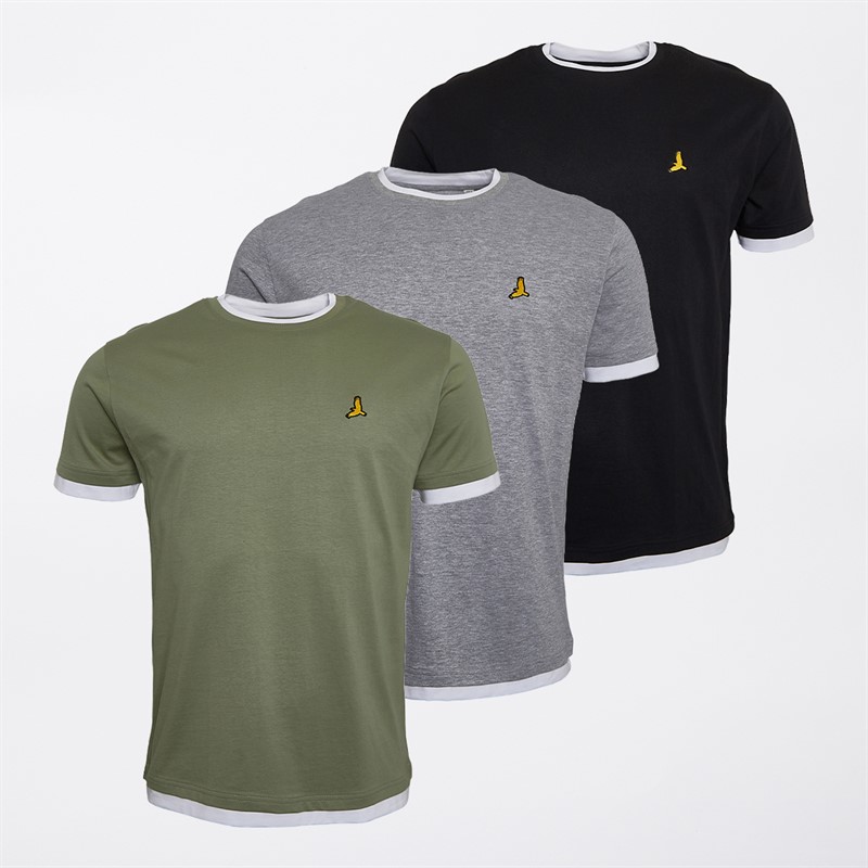 Brave Soul Mens Kobe Three Pack Contrast T-Shirts Jet Black/White/Light Grey Marl/White Washed/Sage/White Jet Black/White Lt Grey Marl/White Washed Sage/White