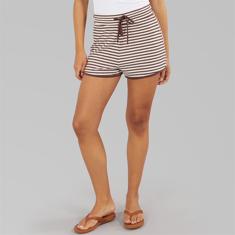 Brave Soul Womens Heart Tie Front Shorts Brown/Cream