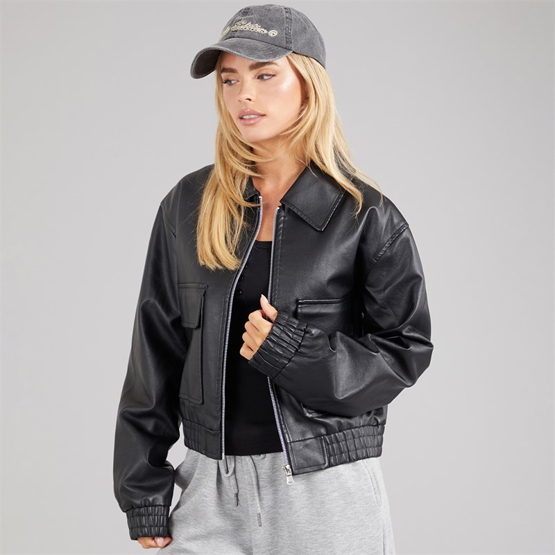 Brave Soul Womens Lutana Zip Through Bomber Jacket Black