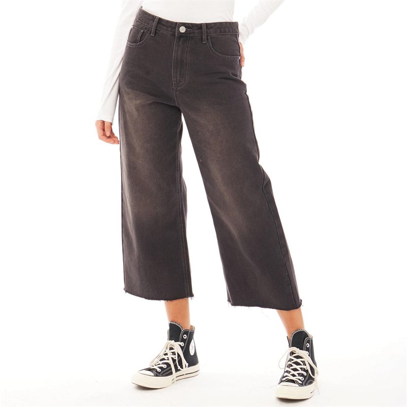Brave Soul Womens Melody Wide Leg Raw Hem Jeans Charcoal