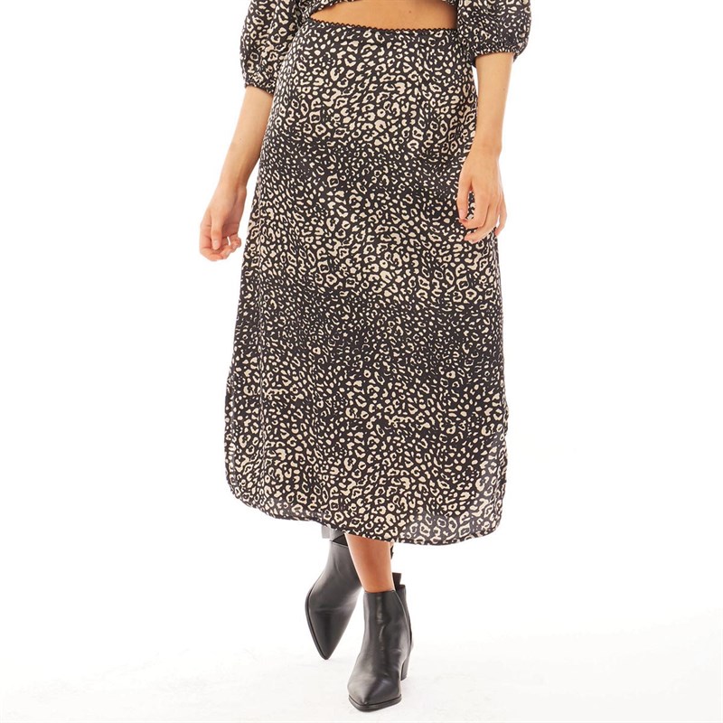 Brave Soul Womens Zuria All Over Print Skirt Black/Beige Leopard Print