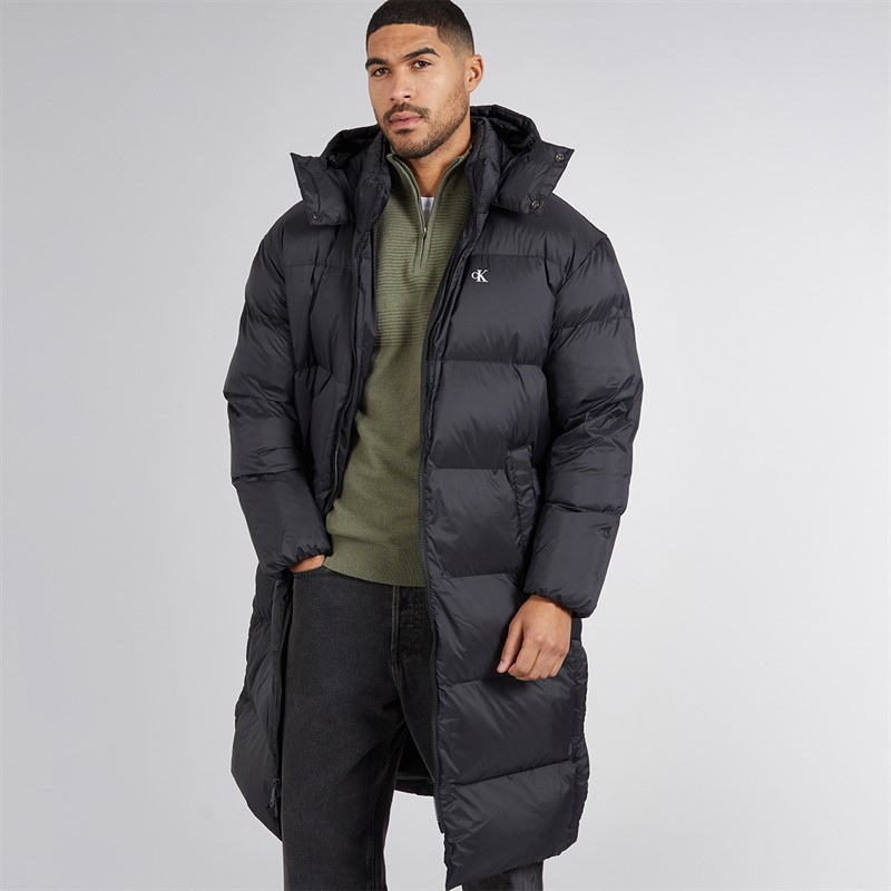 Calvin Klein Mens Long Hooded Puffer Coat Black