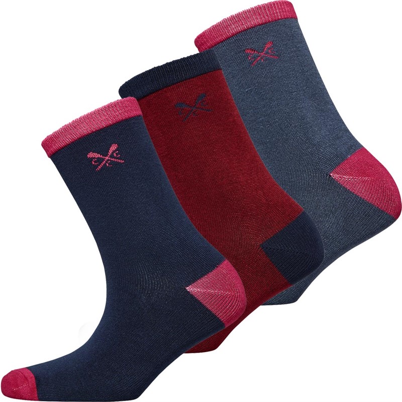 Crew Clothing Womens Three Pack Socks Navy/Maroon/Indigo