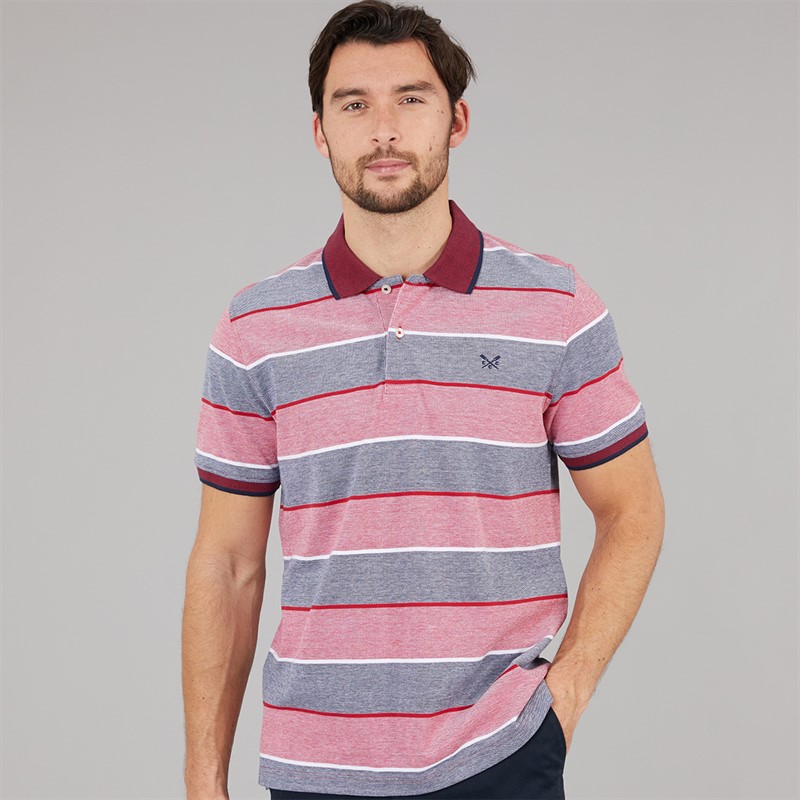 Crew Clothing Mens Oxford Stripe Polo Shirt Heritage White/Crimson/Heritage Navy