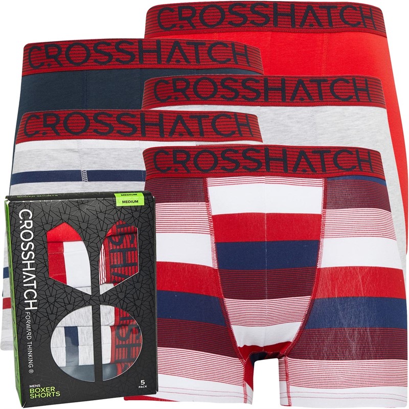 Crosshatch Mens Dipper Five Pack Boxers Red/Stripe/Grey Marl/Stripe/Navy