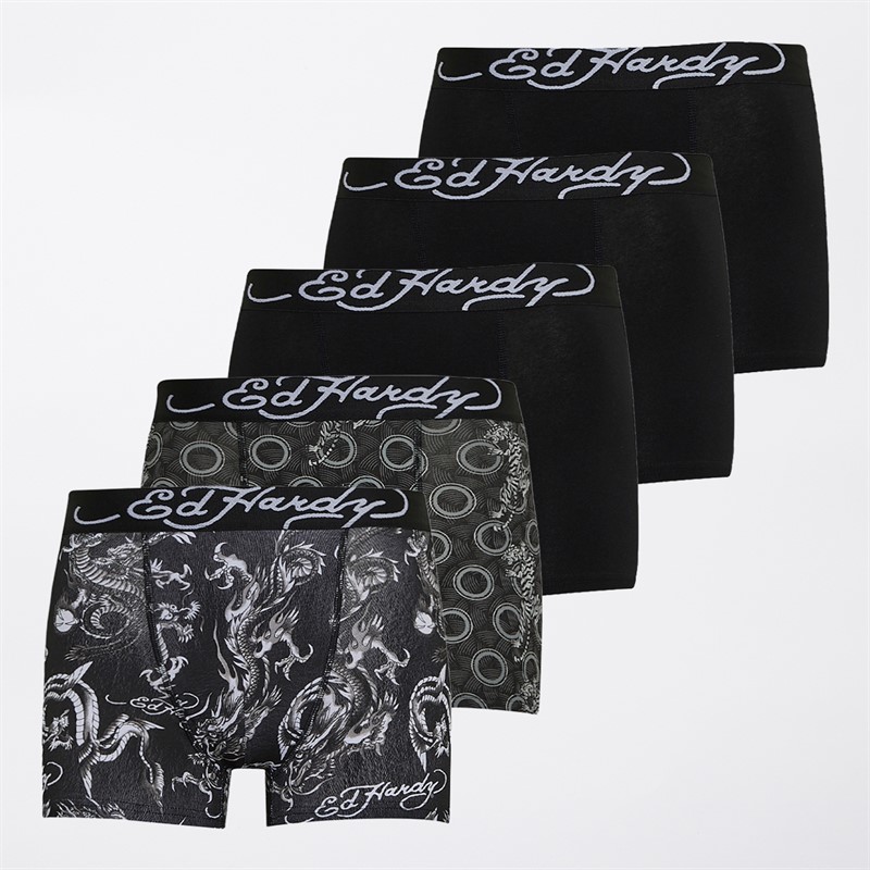 Ed Hardy Mens Codagh Five Pack Boxers Black/Black Aop/Black/Black Aop/Black