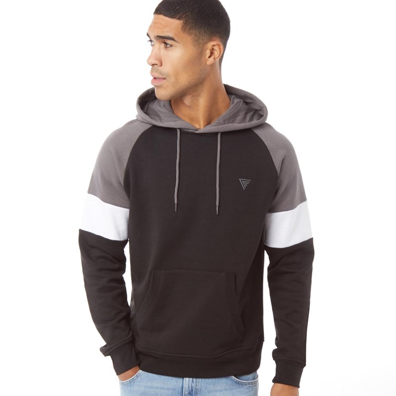 Fluid Mens Stripe Sleeve Hoodie Black/Castlerock Grey