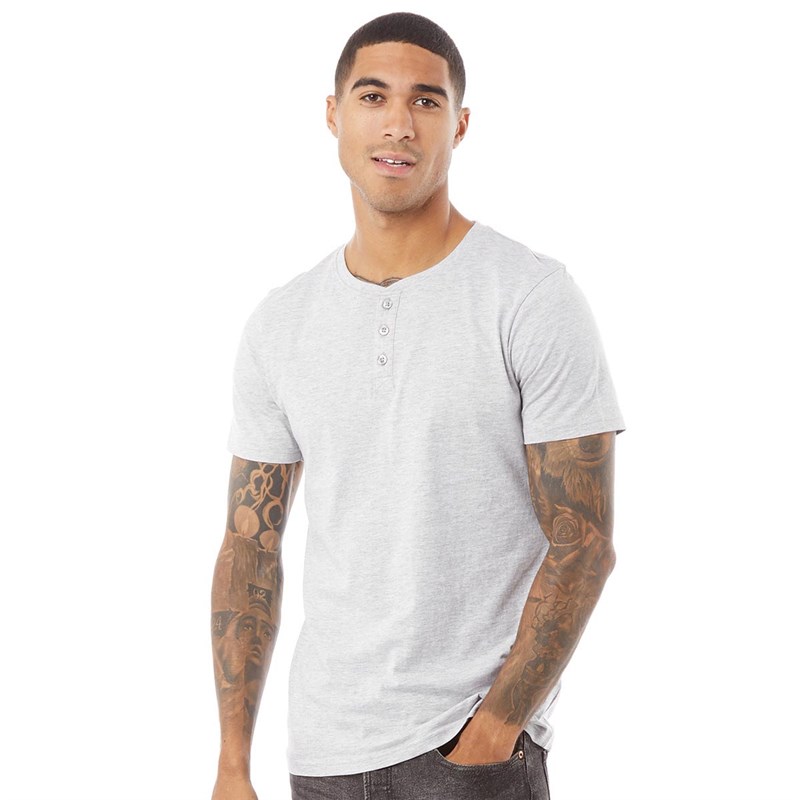Fluid Mens Henley T-Shirt Grey Marl