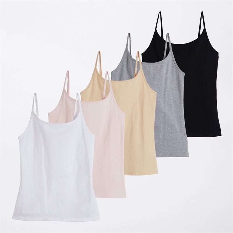 Board Angels Womens Five Pack Strappy Vests Cotton Stretch Black/White/Grey/Natural/Pink Black/White/Gery/Natural