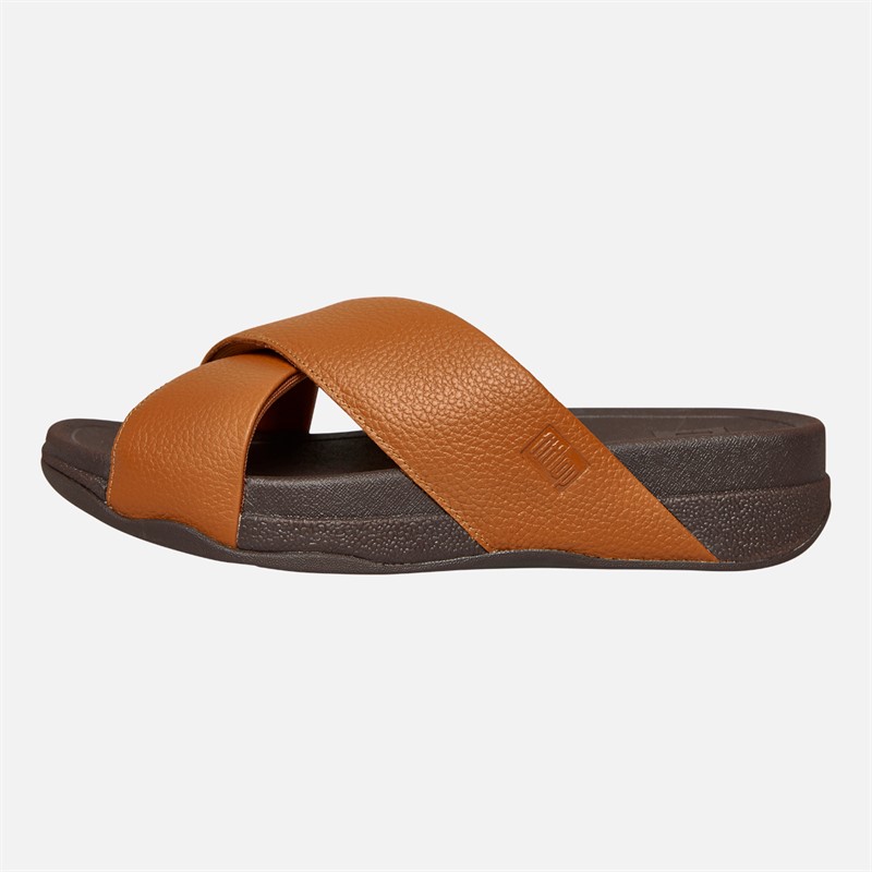 FitFlop Mens Surfer Mens Tumbled-Leather Cross Strap Sliders Light Tan