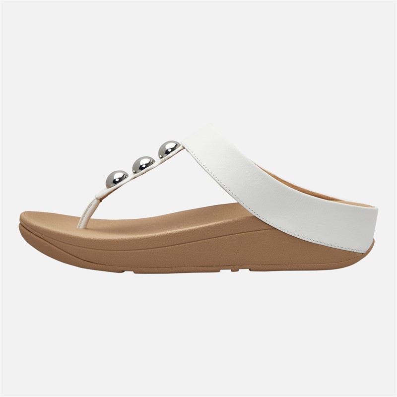 FitFlop Womens Fino Mirror Dome Leather Toe Post Sandals Urban White