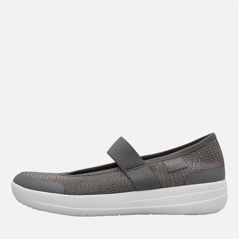 FitFlop Womens Uberknit Metallic Weave Mary Jane Shoes Charcoal/Metallic Pewter