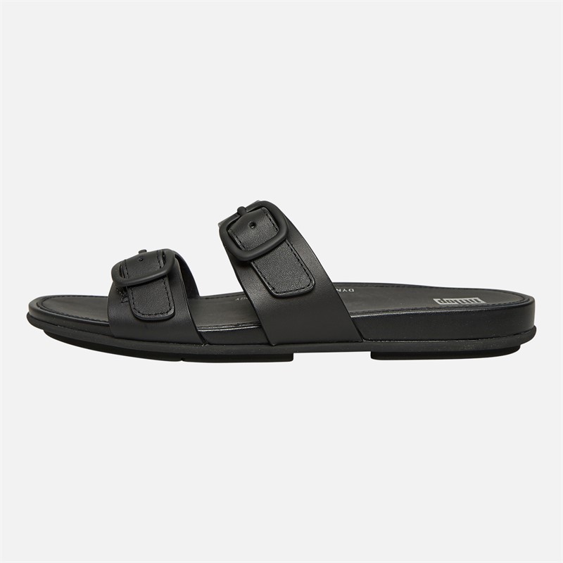 FitFlop Womens Gracie Rubber Buckle Two Bar Leather Sliders All Black