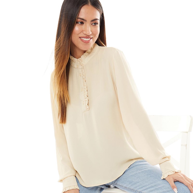Jacqueline De Yong Womens Jdymelisa Long Sleeve Frill Shirt 6 Tapioca