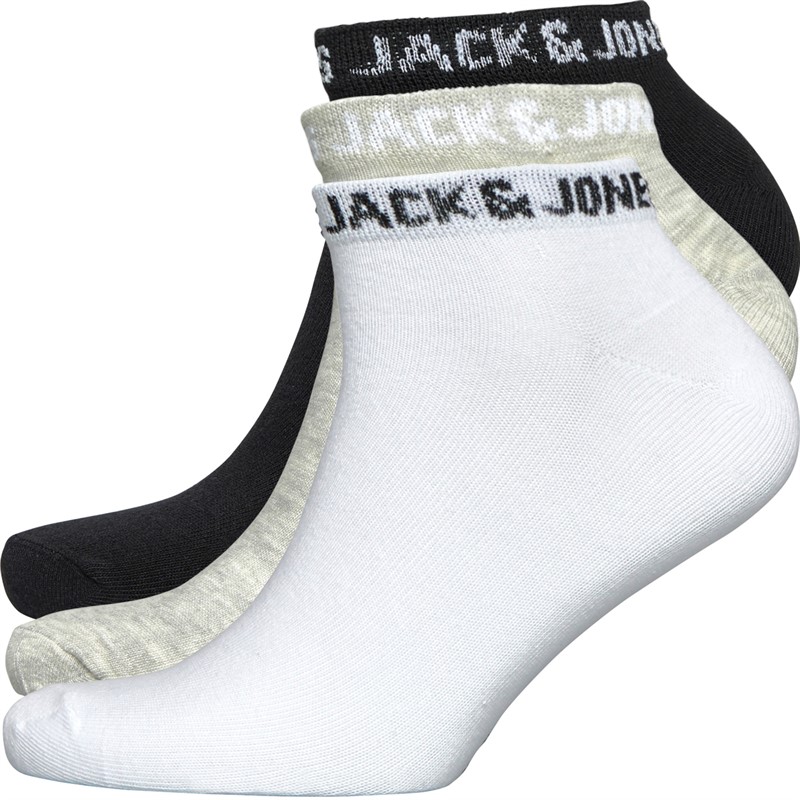 JACK & JONES JACK AND JONES Mens Logo Three Pack Trainer Socks White/Light Grey Melange/Black