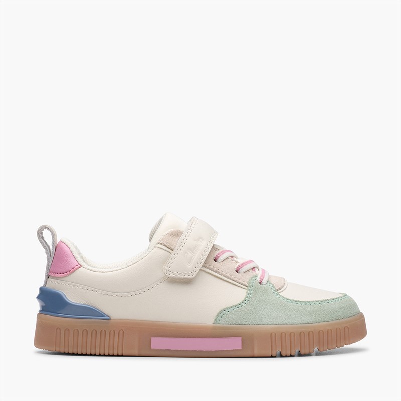 Clarks Girls Olo Vibe F-Fit Trainers White/Pink